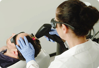 Over a series of sessions, most patients first notice reduced shedding, followed by the appearance of new baby hairs and visible improvements in density.